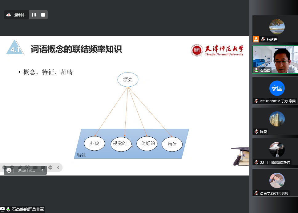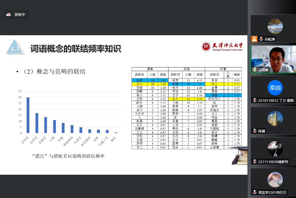 为深入贯彻党的二十大报告关于讲好中国故事,传播好中国声音,增强中华文明世界传播力影响力的战略部署,进一步提升公司教师科研创新能力,拓宽研究思路和视野,促进教师业务交流,推进学术创新,努力营造积极、活跃的学术研究氛围。10月27日下午,公司“学术交流工作坊”举办第二期学术活动,本期活动邀请国际中文教育科研团队青年教师石高峰博士作《汉语词汇频率知识体系构建及习得研究》专题报告。报告会由语言文化学系主任陈晨教授主持,公司全体教师和中外研究生参加报告会。