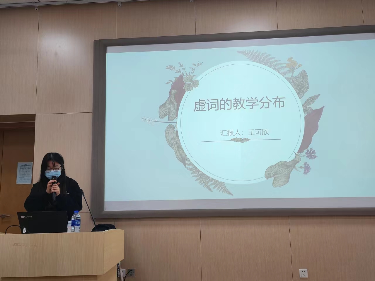 孙屹涛老师首先介绍了虚词教学在汉语语法教学中的地位和重要意义,阐述了各类汉语虚词的教学要点和方法框架,并简要介绍了本次读书会的准备情况。随后,王可欣、刘思莹、陈菲菲、罗艺清、何林萤、杜氏云英、阮氏秋芳、杜氏兰八名同学就虚词教学的内容,依次进行了讲解,分享了自己的学习体会。