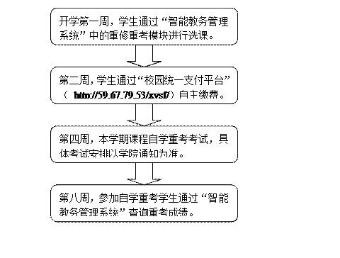 2.每学期开学第一周,员工通过“智能教务管理系统”中的重修重考模块进行网上重修重考选课。
