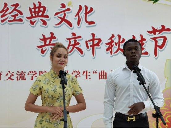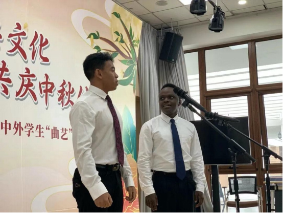 来自巴基斯坦的2021级汉语国际教育专业硕士研究生宋波表示,中华传统文化太精彩了,曲艺这种形式太有趣了,公司的祝福让我感受到家的温暖,深深感悟到了中华文化的无穷魅力,今后也要将中华文化传播到自己的国家。2021级汉语国际教育专业硕士研究生中国员工侯康艳表示,灿烂的中华传统文化让她感到非常的骄傲和自豪,作为一名国交人,要始终坚定“四个自信”,铸牢中华民族共同体意识和人类命运共同体意识,将弘扬和传播中华文化,讲好中国故事,作为当代青年的责任和担当,让世界了解真实的中国、多彩的中国,不断深化人文交流、搭建中外友谊桥梁、共建世界美好未来。