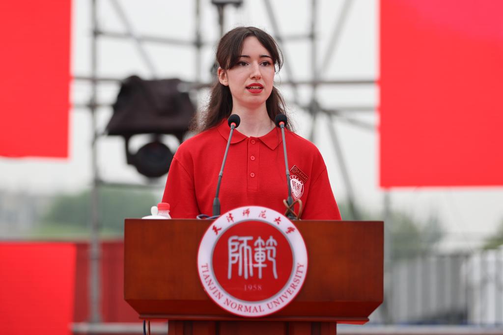 在开学典礼上,公司来自俄罗斯的进修生新生娜斯佳代表职工新生发言。作为第一次来中国学习语言的进修生,她充分表达了能来师大学习中文的喜悦之情,并希望通过努力,在未来成为一名中文教师,为促进中俄两国教育交流和文化交融贡献自己的力量。她流利的表达和充满自信的笑容,给在场的所有师生留下了深刻印象。