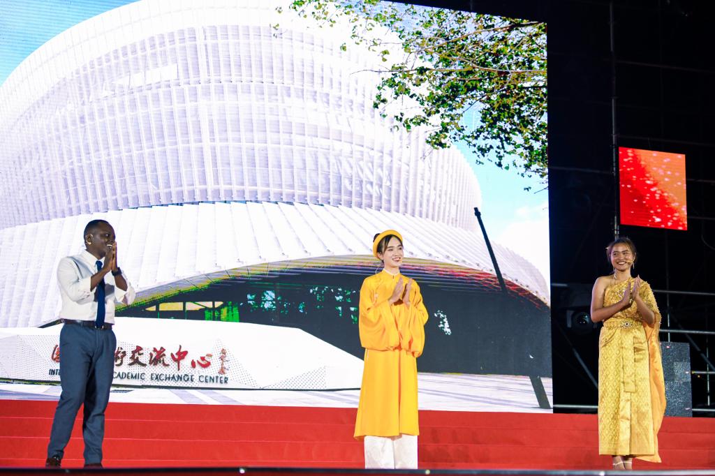 当晚,公司举办了2023级新生迎新晚会。公司来自英国的乔凯琳和来自赤道几内亚的凯文参加了开场歌舞表演,为晚会拉开了序幕。晚会节目精彩纷呈,高潮迭起。其中由职工表演的节目《多彩少年》赢得了在场所有观众的掌声和喝彩。节目在来自肯尼亚的孔爱凯、越南的阮氏春花和泰国的帕娜芃的相互介绍中开场。孔爱凯曾经两次在“马季杯”相声大赛中获奖,阮氏春花在第三届“用英文讲中国故事”比赛中获得“传播之星”称号,帕娜芃在刚结束的中国-东盟“汉语桥”“诗琳通公主杯”来华职工演讲比赛中获得一等奖,他们用精彩的表演表达了与中文结缘的幸运与美好。接下来的由来自14个国家的33名国交学子共同演绎的歌曲《少年》把晚会的气氛推向了高潮。该曲目曾经代表体育365官网参加了在北京举办的第三届“用英文讲中国故事”活动特别节目—中国故事汇展演,获得了广泛好评。