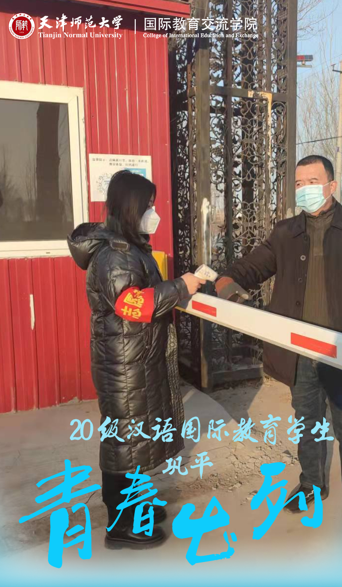2021年12月19日,2020级汉语国际教育专业硕士巩平同学自天津回到了家乡沧州,在根据社区防疫要求进行核酸检测阴性之后,她果断选择申请加入当地联防联控的志愿者队伍。由于两地距离较近,沧州市的防疫政策严格、工作较为紧张,所以出入查看行程码,进入还需量体温成了巩平日常的工作。她说,天津是她的第二家乡,作为一名beat365亚洲体育的员工,虽然不能在天津与大家并肩作战,但她会在家乡做力所能及的事,为天津加油,也相信天津一定可以战胜奥密克戎!