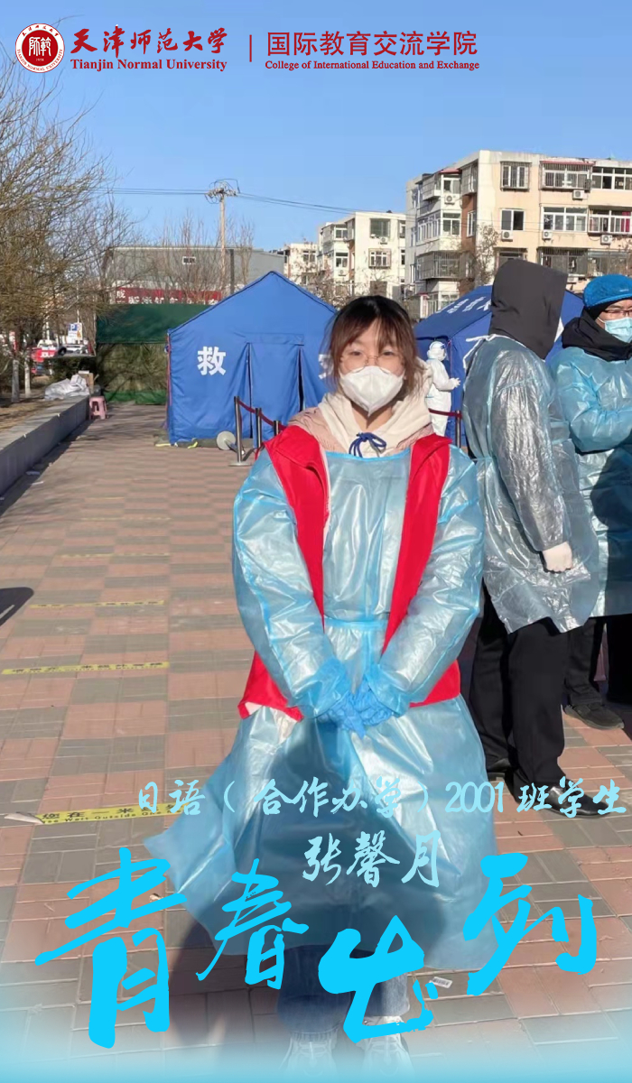 2020级日语(合作办学)本科张馨月同学参加了天津市南开区苏堤路社区的防疫志愿者活动,协助对四个社区开展第三轮核酸筛查工作。她的任务是帮助网格员引导居民进行筛查,并维持检测现场的秩序。看起来内容少,但真做起来却并不容易,首先要“入”,入户对楼内居民进行信息登记,并告知他们按照指定时间下楼排队,必须做到“不漏一户一人”,确保每户居民都能在最短时间内做完核酸检测。接着是“快”,张馨月还要立刻赶到筛查点,组织居民有序排队,协助其他志愿者处理突发情况。面对天气恶劣等不利因素,在组织居民排队的过程中,志愿者们既要照顾到老人儿童的身体状况,还要及时安抚焦急等待的居民的情绪。最后是“全”,直到傍晚张馨月和志愿者同伴们送走了最后一批做核酸检测的居民后,确保全部居民参加核酸检测后她才真正放下心来,圆满完成了第三轮核酸筛查的任务。