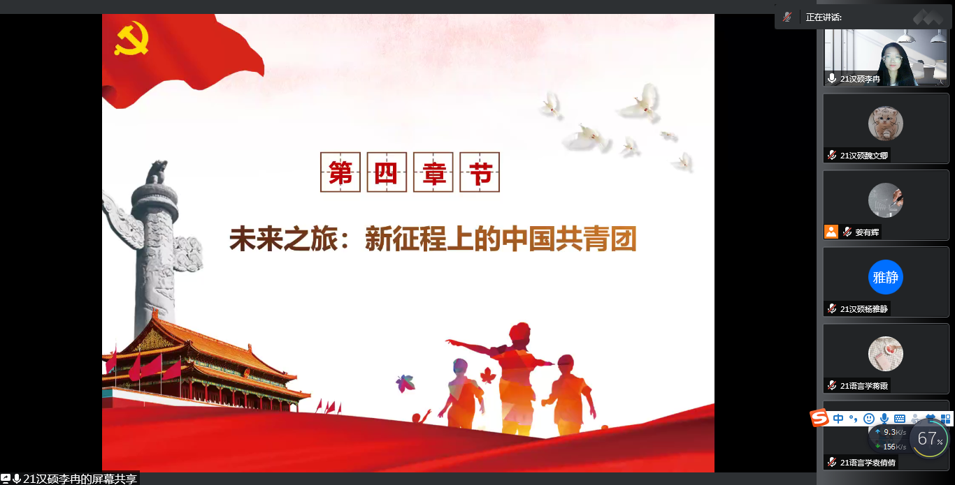 党有号召,团有行动。校青马工程学员李冉从当代青年的角度讲述了共青团开拓创新、自我革命、紧跟党走的奋斗方向,让团员青年们明确了要在新时代新征程上始终当好党的忠实助手和可靠后备军的前进目标。