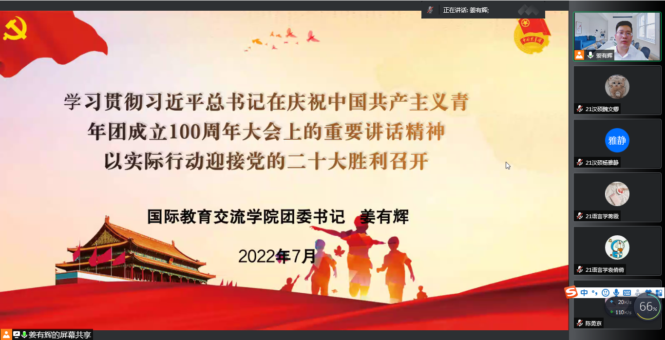 为深入学习贯彻在庆祝中国共产主义青年团成立100周年大会上的重要讲话精神,引领广大团员青年深入体悟,持续掀起学习宣传热潮,在广大团员青年中营造喜迎党的二十大胜利召开的良好氛围。7月29日,体育365官网宣讲团以“学习贯彻习近平总书记在庆祝中国共产主义青年团成立100周年大会上的讲话精神,以实际行动迎接党的二十大胜利召开”为主题,给全体团员上了一堂精彩生动的团课,为后续各团支部组织基层学习起到了积极的引领作用。