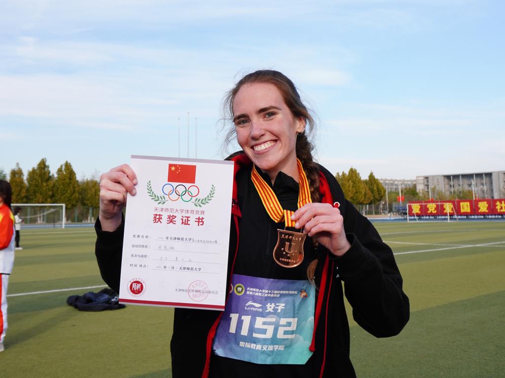 11月16日,“李宁杯”体育365官网第十三届校园迷你马拉松暨第八届教工健身走活动在体育365官网上演。体育365官网  20级汉语言文化专业本科职工乔凯琳(英国)凭借出色的表现,荣获迷你马拉松女子组第三名的好成绩。