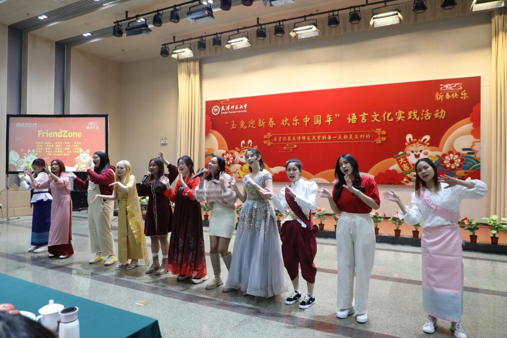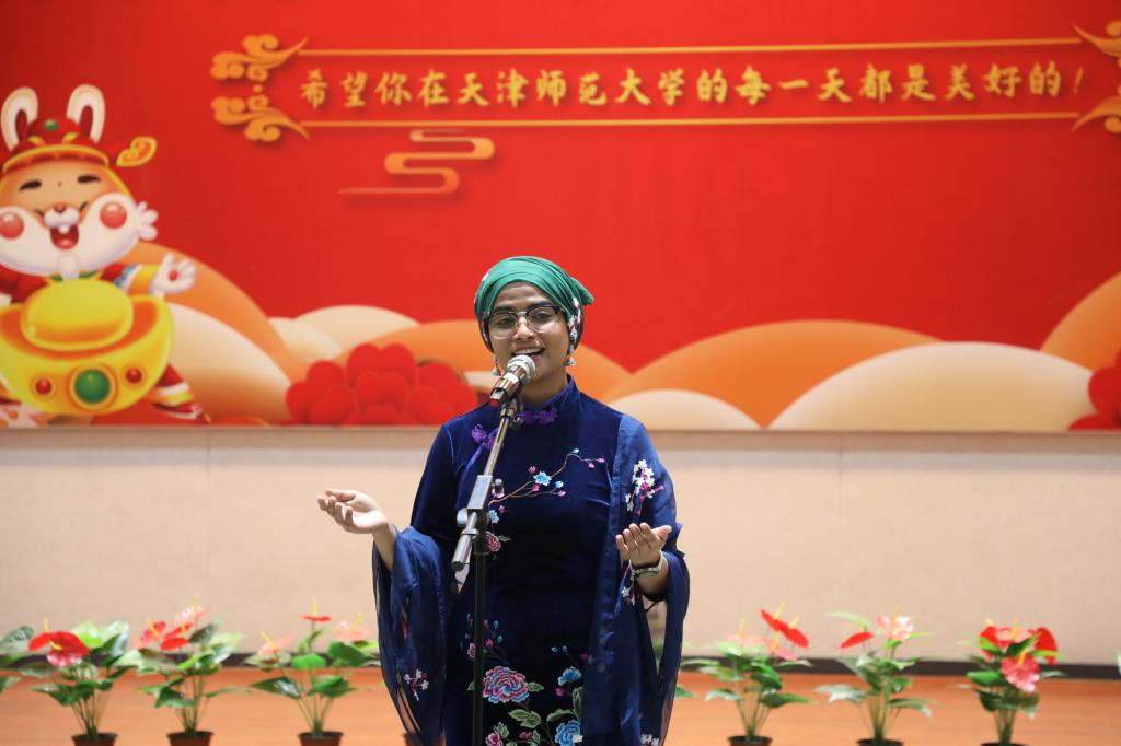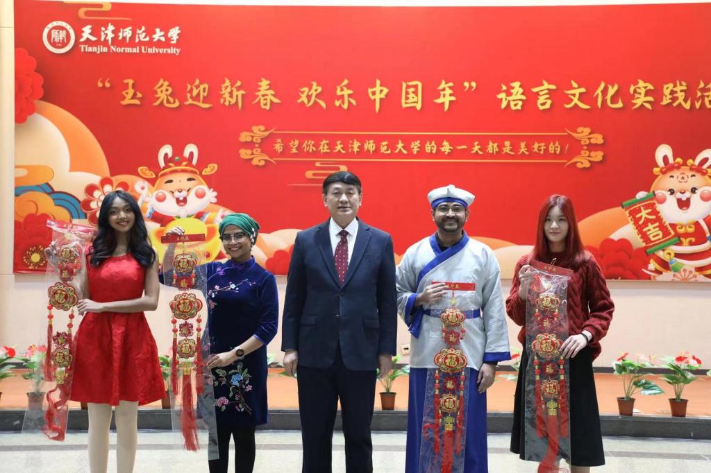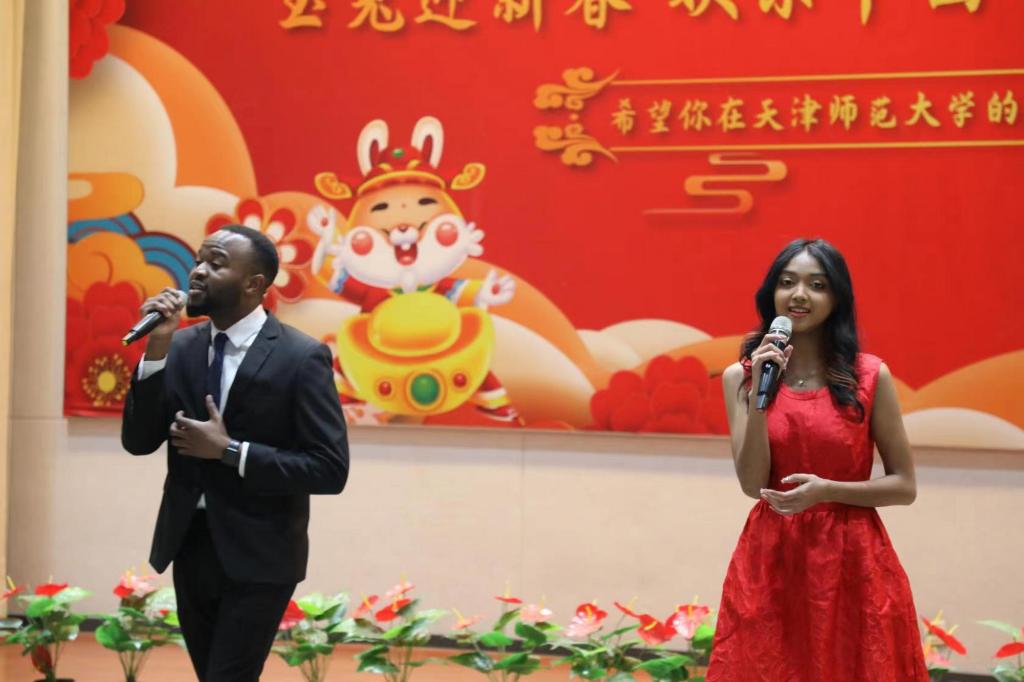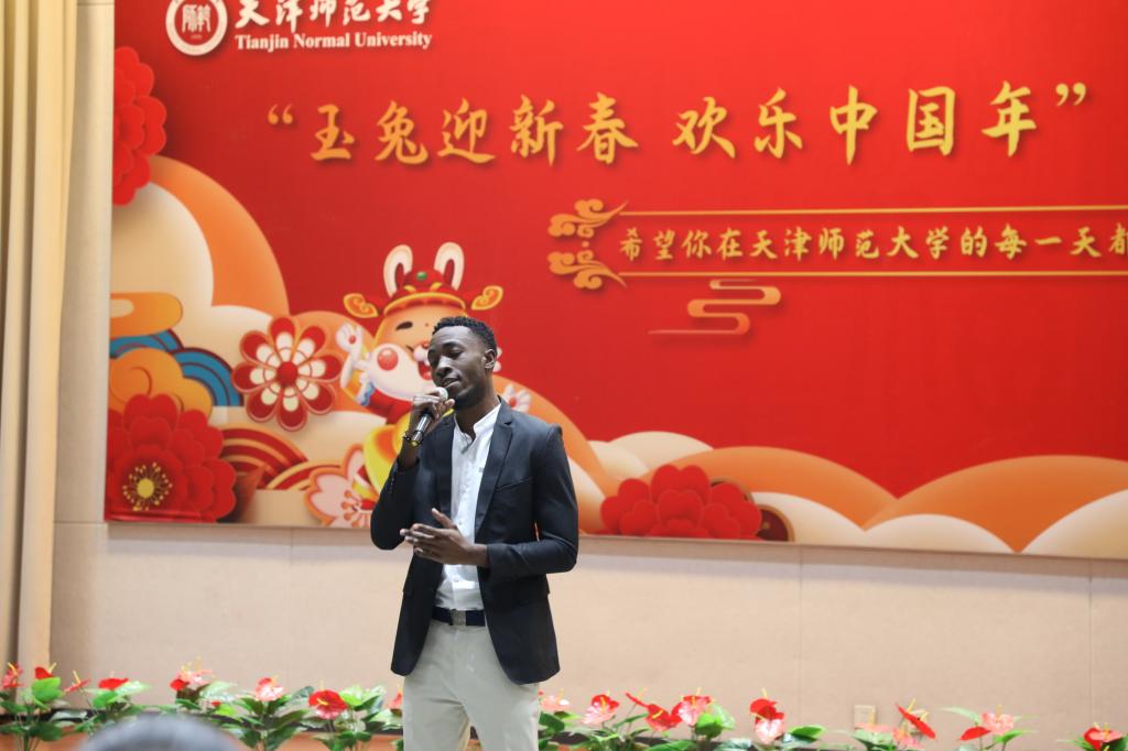 钟英华首先转达张玲书记的节日问候,向长期以来为公司教育事业发展做出突出贡献的中外教师、国际员工致以亲切的新春祝福。他指出,过去的一年,是极具挑战、极不平凡的一年,在疫情防控和事业发展的“双战双赢”艰巨任务面前,全体中外师生团结一致、同舟共济,与公司共同奋力拼搏,取得了突出成效。大家珍惜来之不易的学习机会,克服困难,刻苦学习,积极参加公司组织的各项活动,在“你好,天津”短视频大赛中,取得了4个月赛和4个季赛奖的优异成绩。师生团队双双入围“汉教英雄会”全国展演,专业学位教育评价获得B+好成绩,着实可圈可点。他勉励师生传承优良传统,珍惜时间,努力学习,练就本领。他表示,春节是中国最重要最盛大的传统节日,兔预示着善良、智慧和充满生机活力,祝愿全体中外师生兔年春节愉快、身体健康、学习进步,再创佳绩。