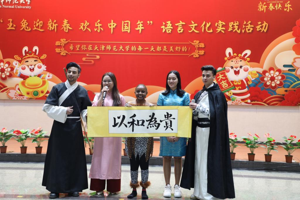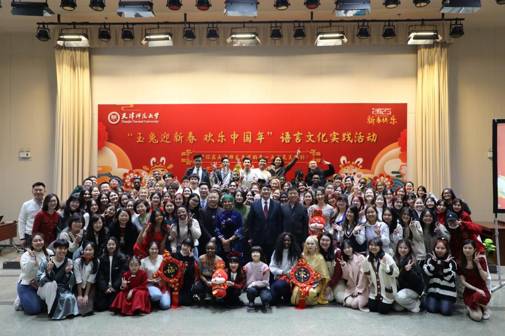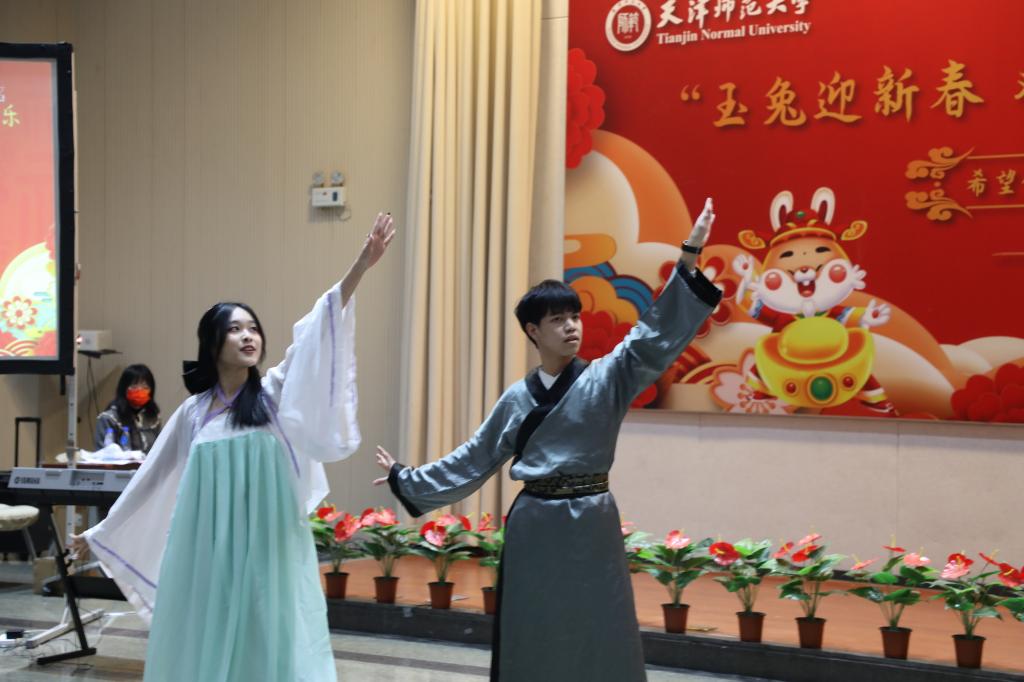 除夕下午,“玉兔迎新春 欢乐中国年”语言文化实践活动在会议中心三楼多功能厅举行。公司党委副书记、董事长钟英华出席并致辞,党委办公室、董事长办公室、国际交流处、体育365官网等单位负责人陪同,全体在校国际员工和教师代表118人参加。实践活动以中华经典故事情景剧、小品、朗诵、独唱、歌舞等丰富多样的语言文化实践形式展示了国际员工丰富多彩的校园学习生活,对中国语言文化的深入理解,以及对中国传统新春佳节的喜爱。