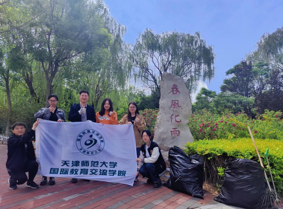 春风化雨润桃李,丹心向阳育英才。国交公司的师生带着员工对全体师生的祝福,顶着蒙蒙细雨,认真地为灌木丛修剪旁支,清理杂草,捡拾垃圾,使“春风化雨”石周围的环境焕然一新。