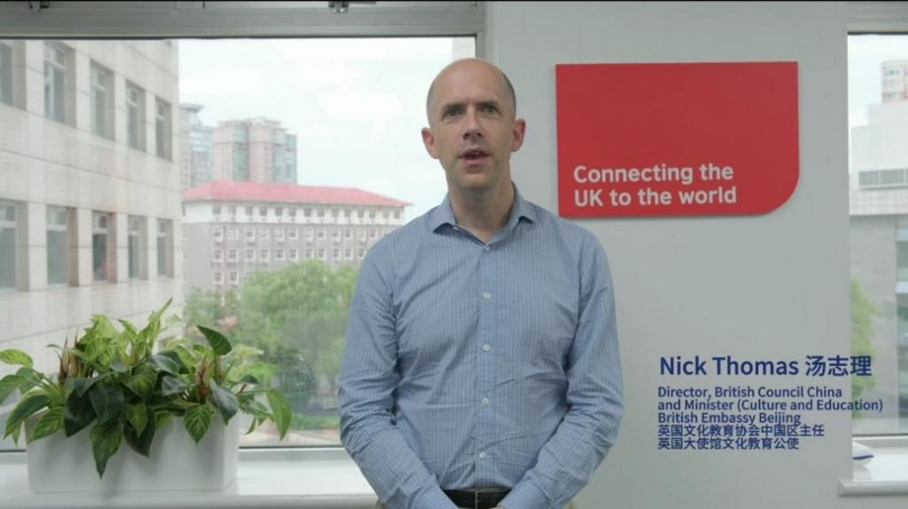 英国文化教育协会中国区主任、英国驻华大使馆文化教育公使汤志理通过视频向夏令营开营表示热烈祝贺。他勉励学员珍惜此次难得的沉浸式学习机会,努力实践提升中文水平、深入了解中国文化,并预祝学员们在深入的实践中收获丰硕成果。