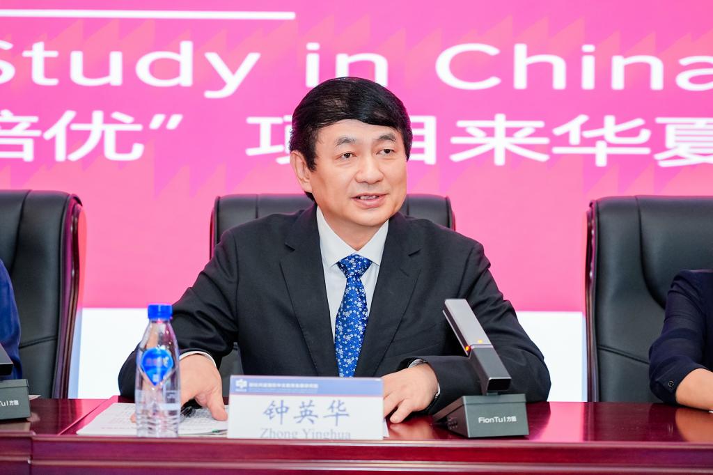 钟英华对培优项目师生来校表示诚挚欢迎。他指出,中文培优项目得到中英两国政府高度重视,感谢中国教育部语合中心为培优项目员工提供在华学习实践支持。各位英国员工远道而来,亲耳听、亲眼见,设身处地沉浸体验天津大都市历史文化和中国式现代化,机会难得、值得珍惜。希望大家走进城市、走进社会,深度沉浸、深度体验,感受天津市民的热情好客,与学习语伴深入交流,学习中文地道表达,体验文化深刻内涵,增进友谊结交朋友,感知真实立体全面的中国,将来把天津故事讲给自己的亲朋好友,做中英青年心灵相知和友好交往的促进者,为增进中英青少年理解互信和心灵相通多做贡献。