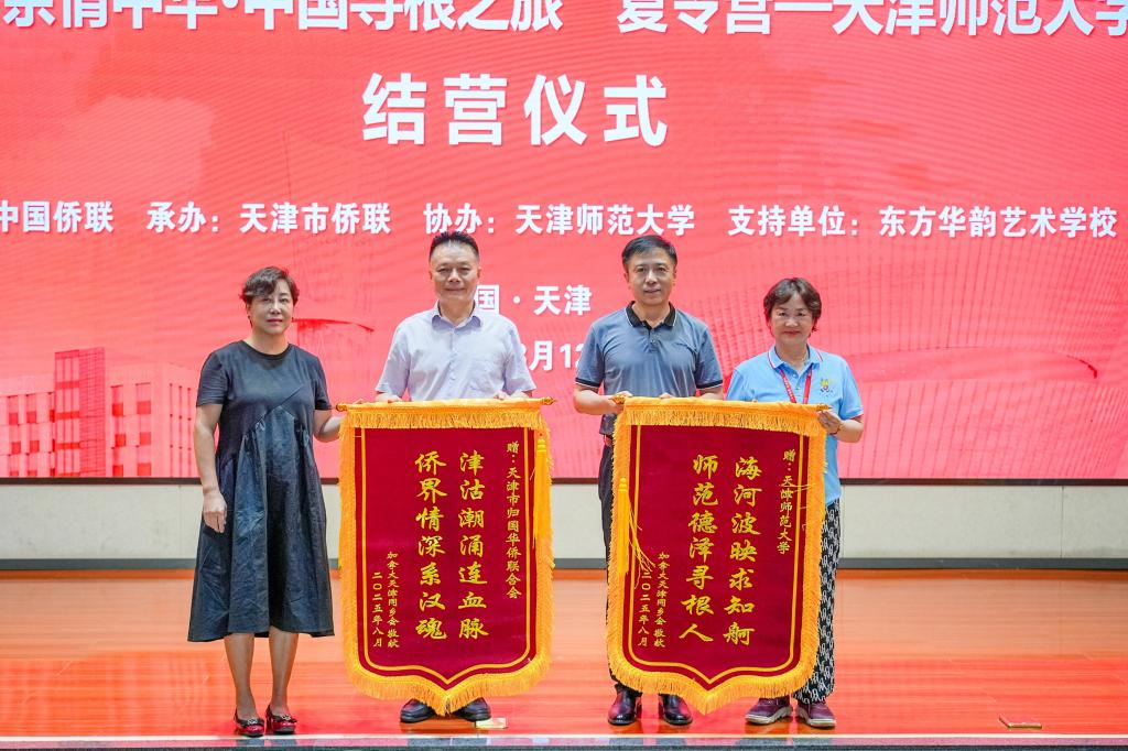 8月12日,2025“亲情中华·中国寻根之旅”体育365官网营在公司举行结营仪式。天津市侨联副主席于滨,天津师范大公司党委副书记董洪霞,市侨联社会工作联络部二级调研员杨泽桐,公司党委统战部部长张向东,东方华韵艺术公司董事长刘雪莉,加拿大天津同乡会常务副会长徐嫣,奥地利奥华中文公司校董左兴国等出席。葡萄牙淑敏语言文化中心、加拿大天津同乡会、法国子语学堂有关负责同志和嘉宾,体育365官网部校共建国际中文教育发展研究院、体育365官网相关负责老师、任课管理教师、带队老师和全体营员参加。