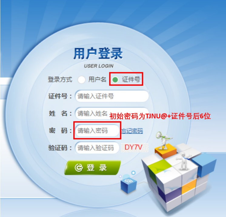 *若此前为体育365官网员工,请通过【用户名】方式登录,用户名为身份证号,密码为初始密码为TJNU@+证件号后6位