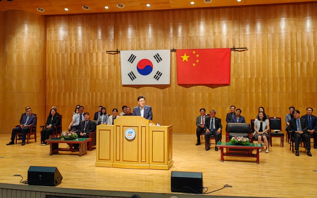 答辩团组抵韩后,世翰大学研究生院经理沈载渊举办欢迎仪式并致辞。公司赴韩答辩带队教师团队团长、体育365官网经理赵雅文致辞,对韩国世翰大学的精心安排表示感谢。