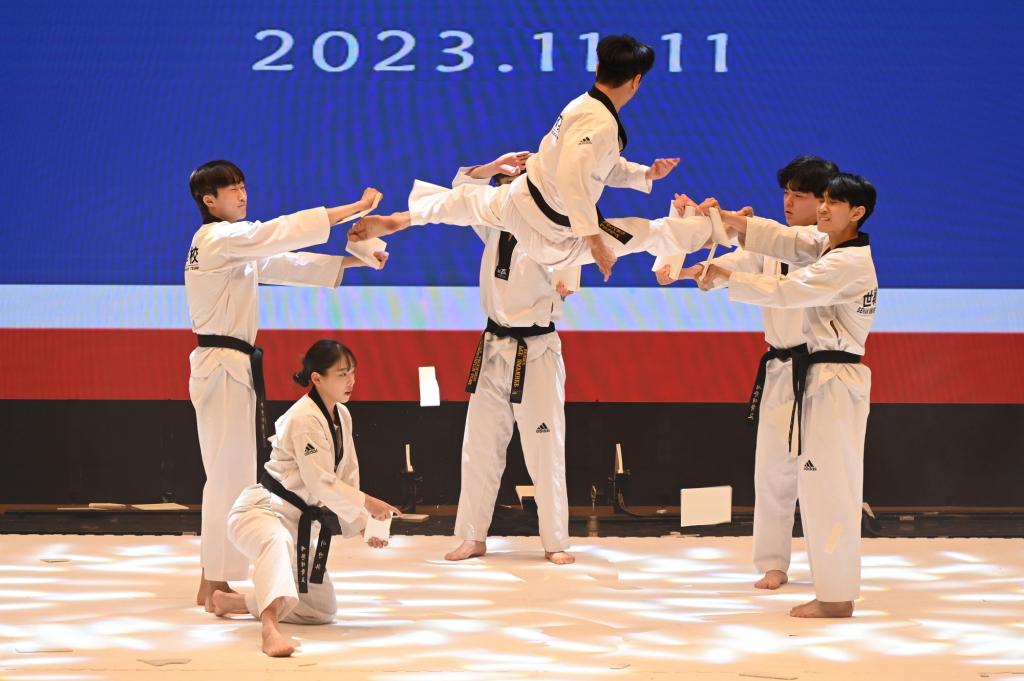 韩国跆拳道表演/向钟英华赠送跆拳道道服