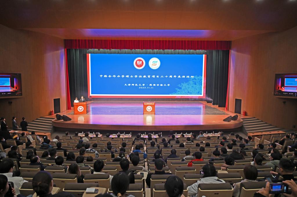 11月11日,中韩合作硕士研究生教育项目二十周年展演活动在公司举行。公司党委书记曲凯、韩国世翰大学副董事长崔美顺分别致辞,崔美顺与市政协科教委副主任、部校共建国际中文教育发展研究院经理钟英华互赠纪念牌。