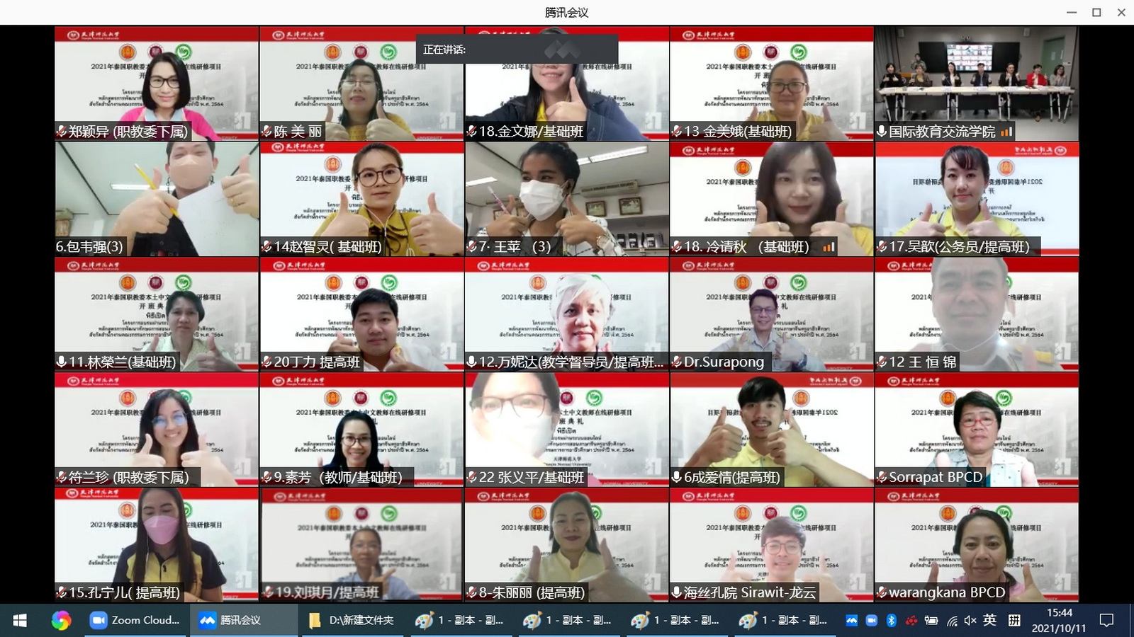 10月11日,2021年泰国本土中文教师在线研修项目开班典礼在线上举行。泰国职教委职业教育官员与教师能力发展办公室主任素拉蓬·埃穆泰、泰国海上丝路孔子公司理事会秘书长彭萨、泰国曼松德昭帕亚皇家师范大学孔子公司中方经理吕由出席并讲话,公司职工管理服务中心主任潘红岩、体育365官网经理赵雅文出席并致辞。国际交流处、体育365官网相关领导与来自泰国各职业公司、中小学近400名本土教师在线上参加了开班典礼。