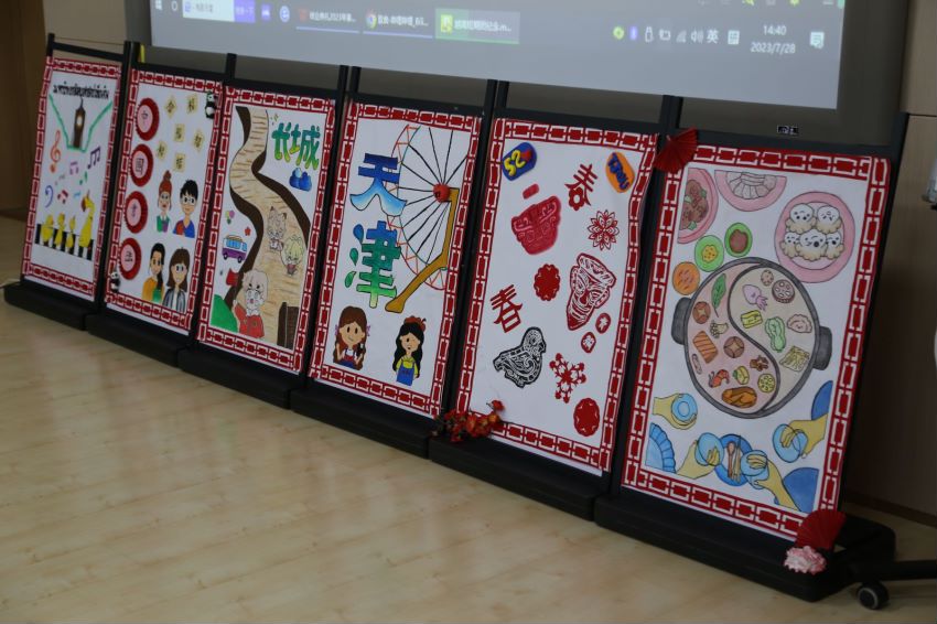 本次暑期中文交流活动还安排多次文化体验课程,使学员们在中国剪纸、中国书法、中国歌曲和中国结制作的学习过程中,亲手体验了不一样的中国文化,共同设计完成了精美的文化作品展览。
