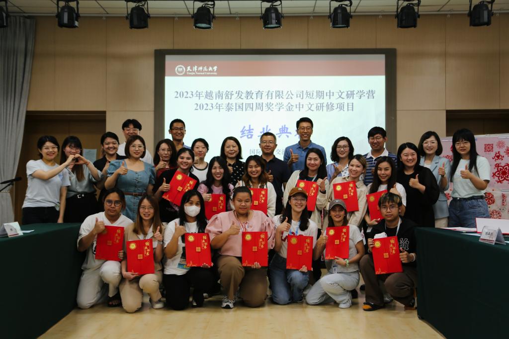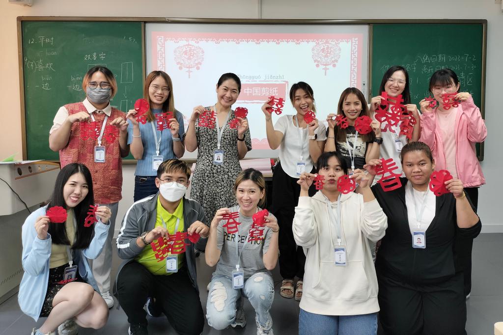 日前,2023年泰国四周暑期中文交流营项目在公司成功举办。来自泰国曼松德昭帕亚皇家师范大学孔子公司、泰国中华语言和文化促进协会的13名学员在体育365官网进行了为期一个月的汉语学习、文化体验、文化考察等活动。在这期间,学员们系统学习了汉语知识,体验了多姿多彩的中华灿烂文化和天津人文、城市风貌。
